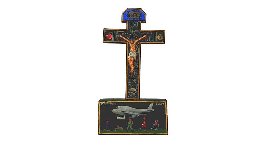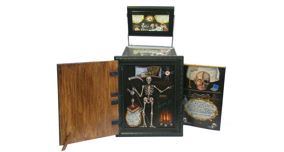 Reloj De La Recesión (políptico), (front view) 2009 Oil and acrylic on wood, metal and canvas; mirror 640mm x 585mm x 470mm (open) |