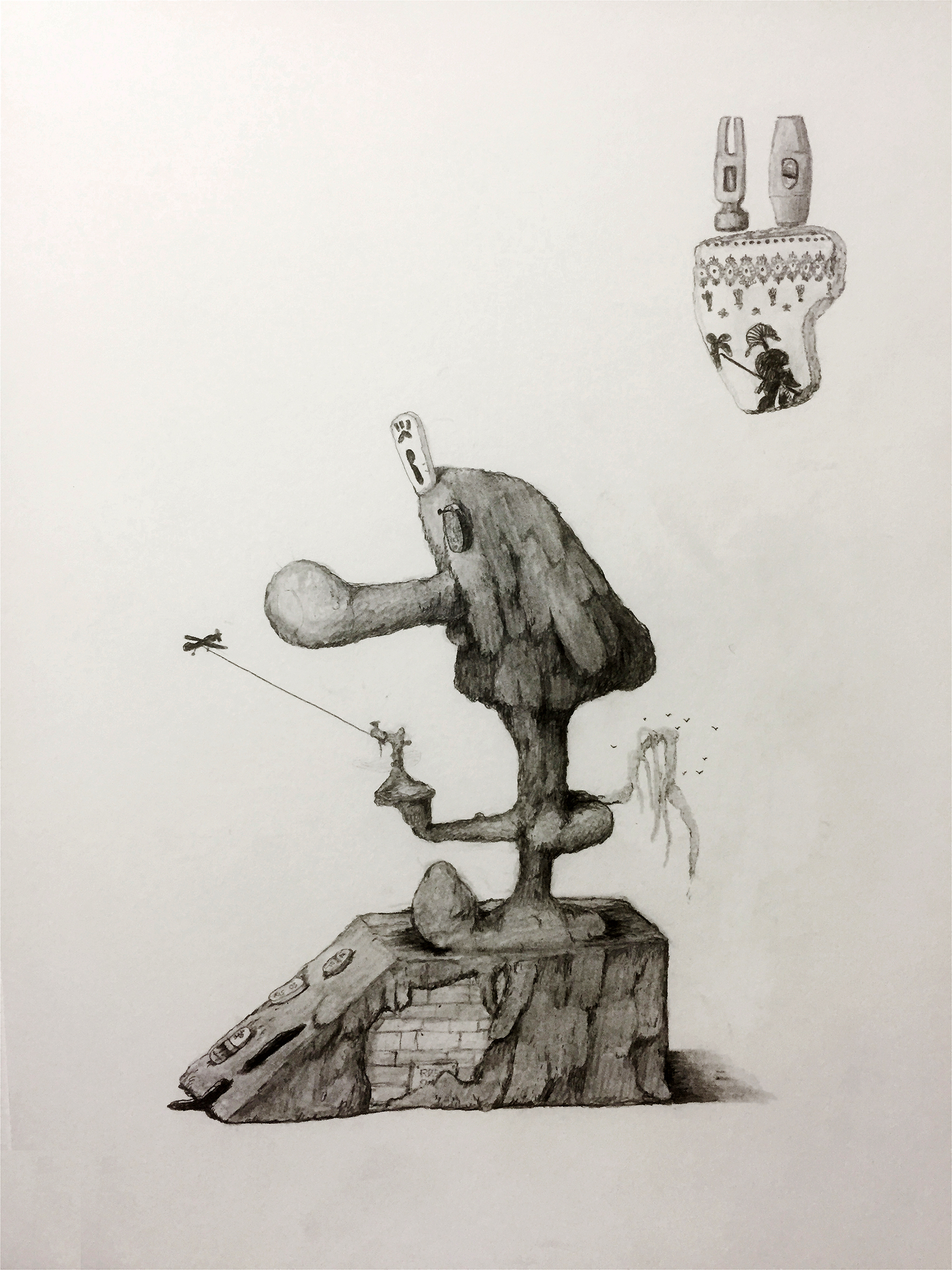 Totem Gnome Rome 2018 graphite on paper 16x12in 40x30cm