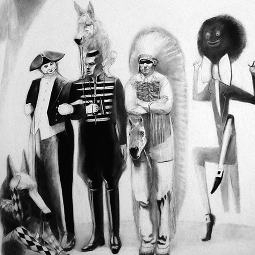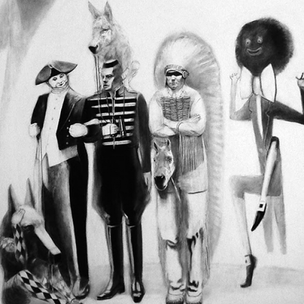 Hear No Evil See No Evil Speak No Evil 2011 charcoal on paper 59x77in 150x196cm