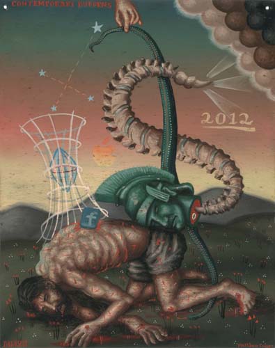 Contemporary Burdens (central panel) 2012 oil on metal 14x11in 36x28cm
