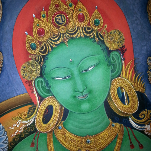 Arya Tara 41x34in mineral paints, gold and silver on hand-woven canvas