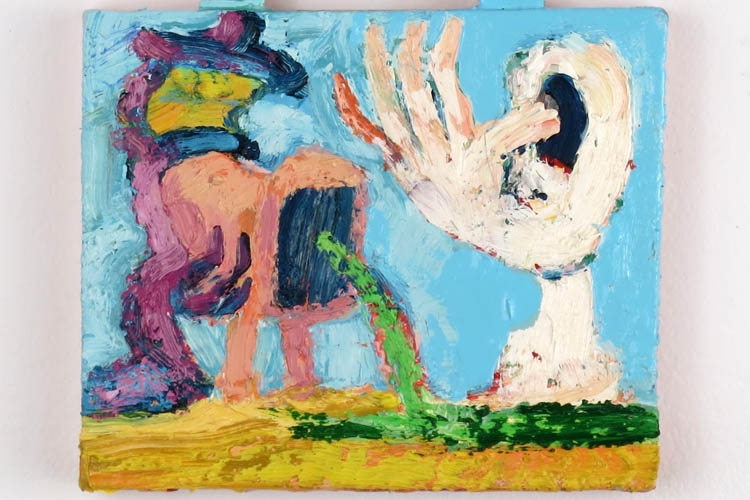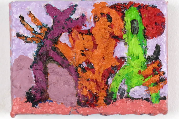 Small paintings in oil and enamel on wood.